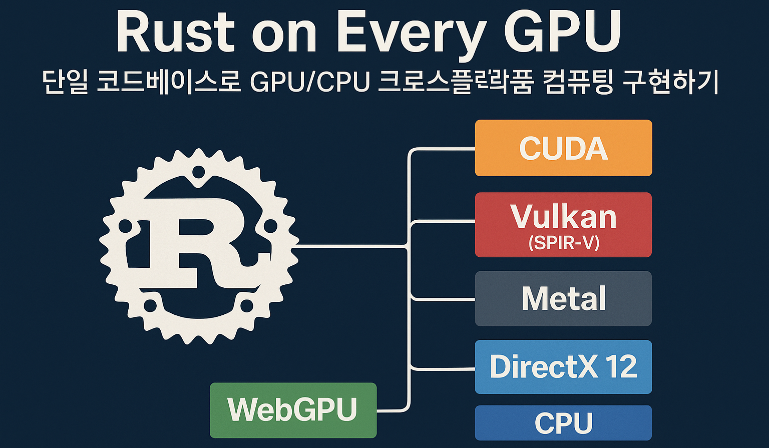 목적: 한 벌의 Rust 커널 코드를 유지하면서 다양한 GPU/CPU 백엔드에서 동일하게 실행하는 방법을, 아키텍처→예제 코드→빌드/운영→성능/보안까지 실무적으로 정리합니다.