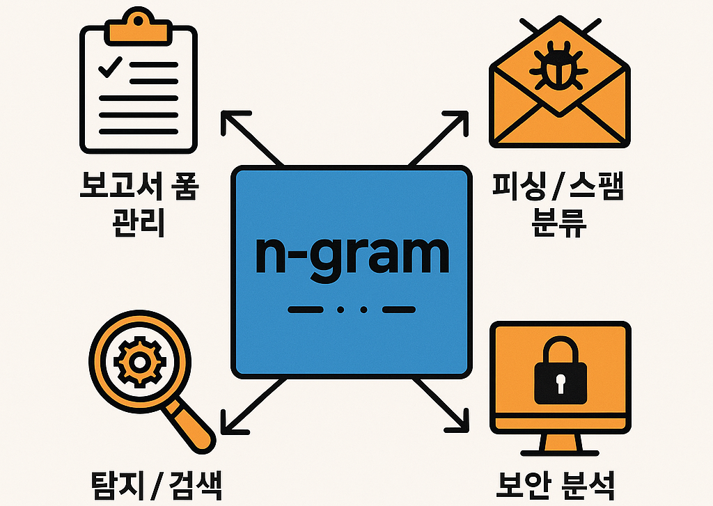 - n-그램은 이 구조에서 (a) 결과 평가 지표, (b) 데이터 전처리/색인, (c) 탐지 피처로 다용도 핵심 블록이 됩니다.