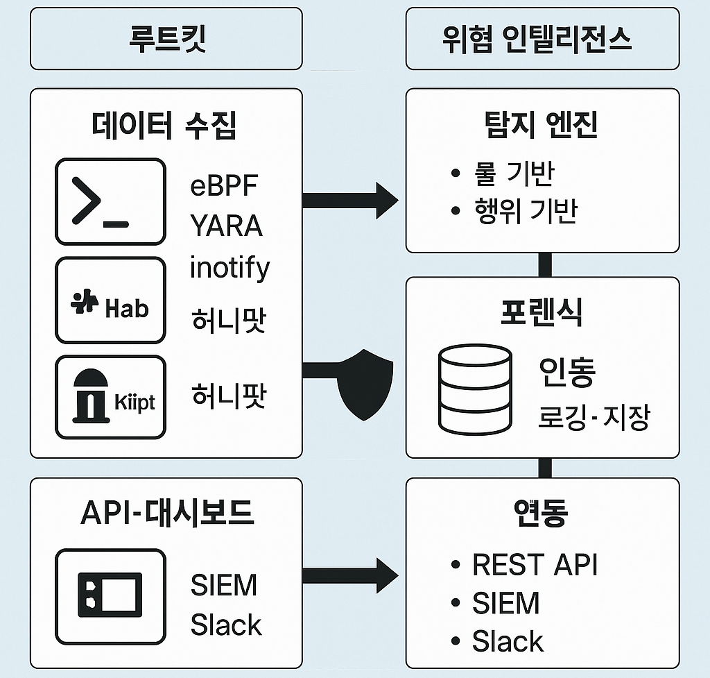 - 선택: bcc/bpftrace(커널≥4.9 권장), yara, python3(경량 API), nftables/ipset