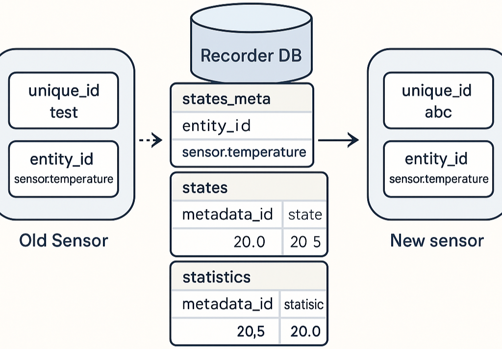 이전 센서의 상태(states)와 통계(statistics) 히스토리를 “새 센서”에서 끊기지 않게 이어받는 방법입니다.