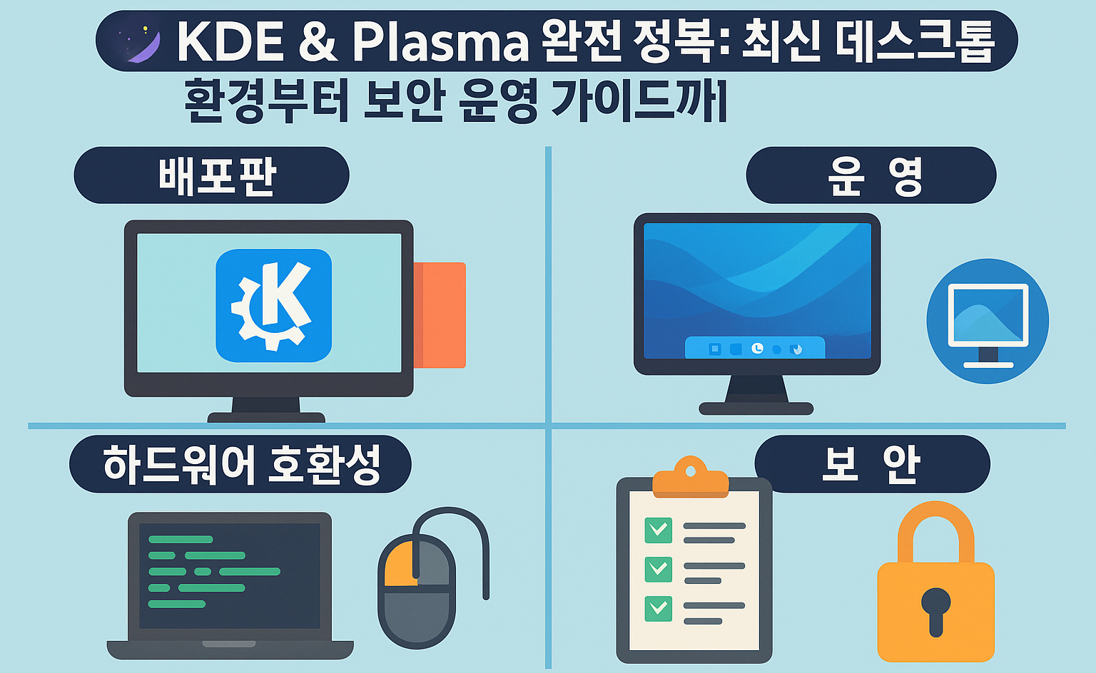 - 성능/효과: KWin 이펙트, 타일링/스마트 윈도우 관리, 하이 DPI·분수배율