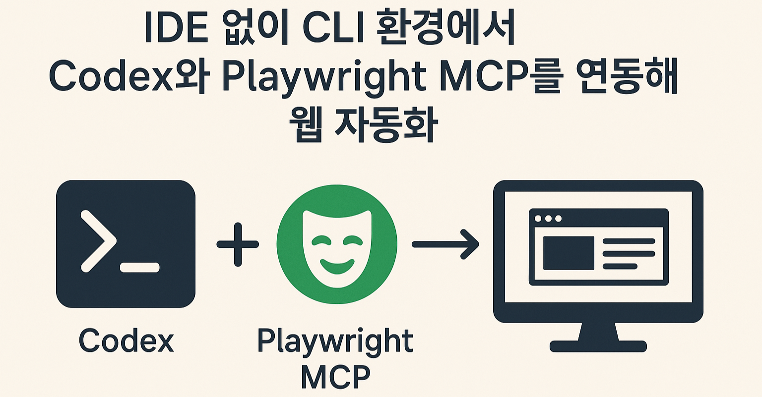 아래 안내만 따라 하시면 VS Code 없이도 터미널에서 Codex CLI로 Playwright MCP를 붙여 웹 자동화(접속, 클릭, 스크린샷, PDF 저장 등)를 실전에서 바로 쓰실 수 있습니다.