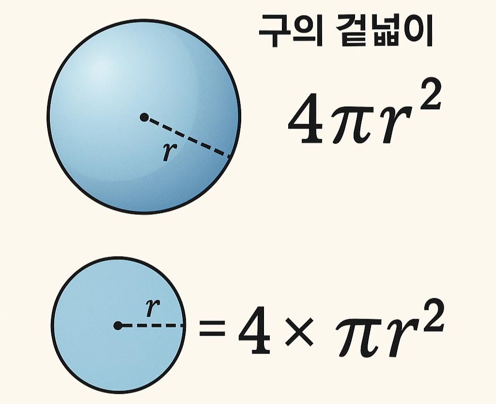 | 구의 겉넓이 | 4πr² | 표면 전체 |