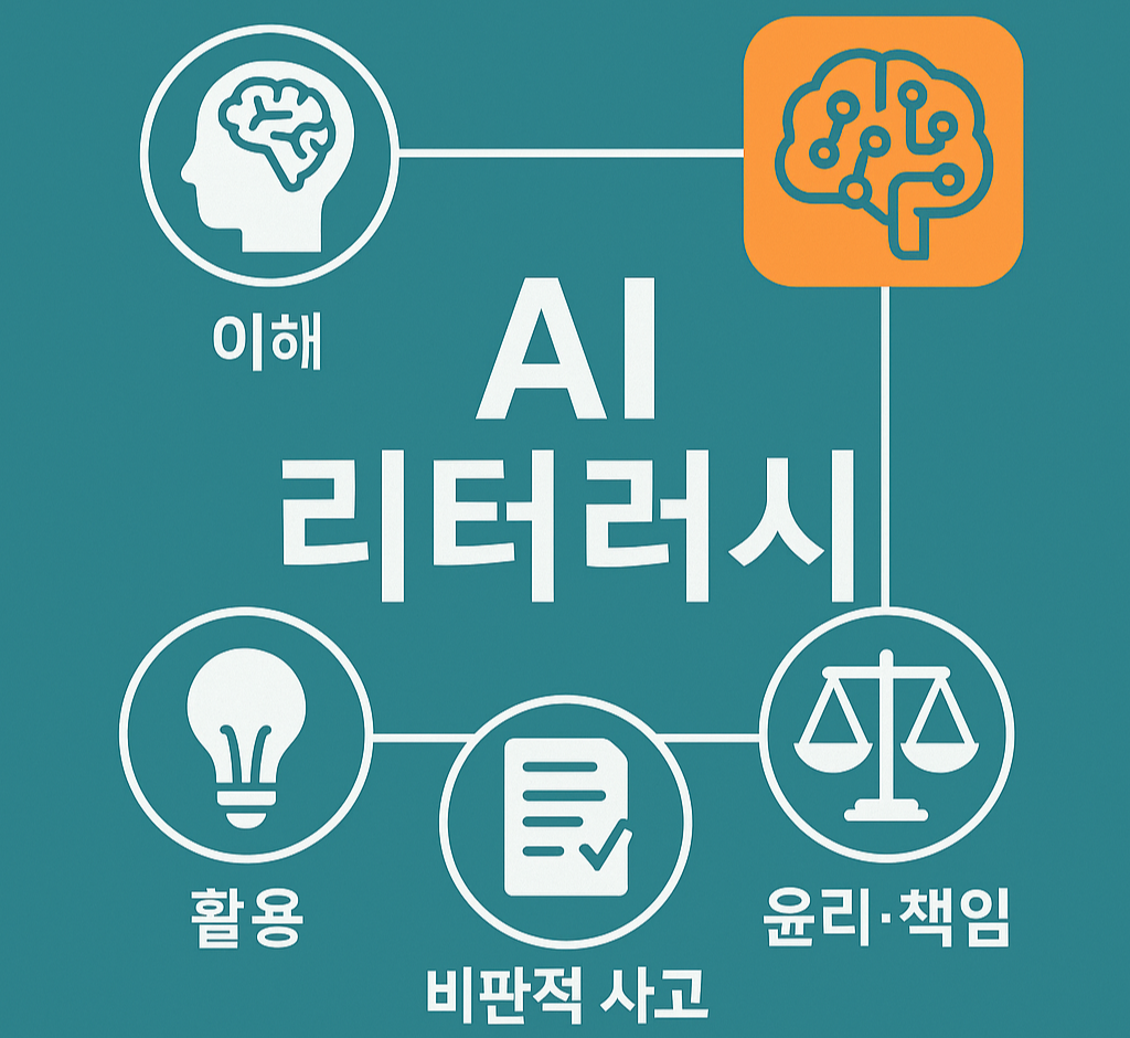 AI 리터러시는 AI를 이해하고(개념), 일에 쓰고(활용), 결과를 검증하며(비판적 사고), 책임 있게 운영(보안·윤리·거버넌스)하는 전체 능력입니다. “왜/무엇/어떻게”를 체계적 로드맵으로 정리해 바로 적용할 수 있게 돕습니다.