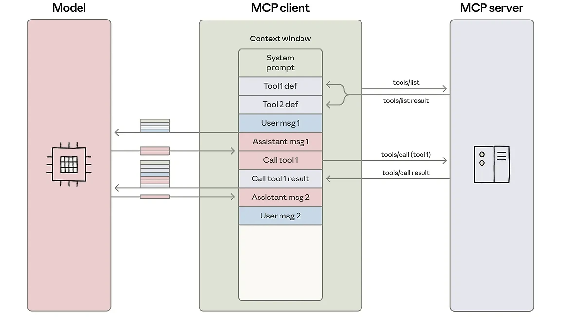 - MCP(Model Context Protocol) 는 에이전트가 외부 시스템(Drive, Salesforce, Slack, GitHub, DB 등)에 연결하는 표준 프로토콜입니다. 도구가 늘수록 “도구 정의(스키마/설명)”와 “중간 결과”가 컨텍스트를 잠식해 비용·지연이 급증합니다.
