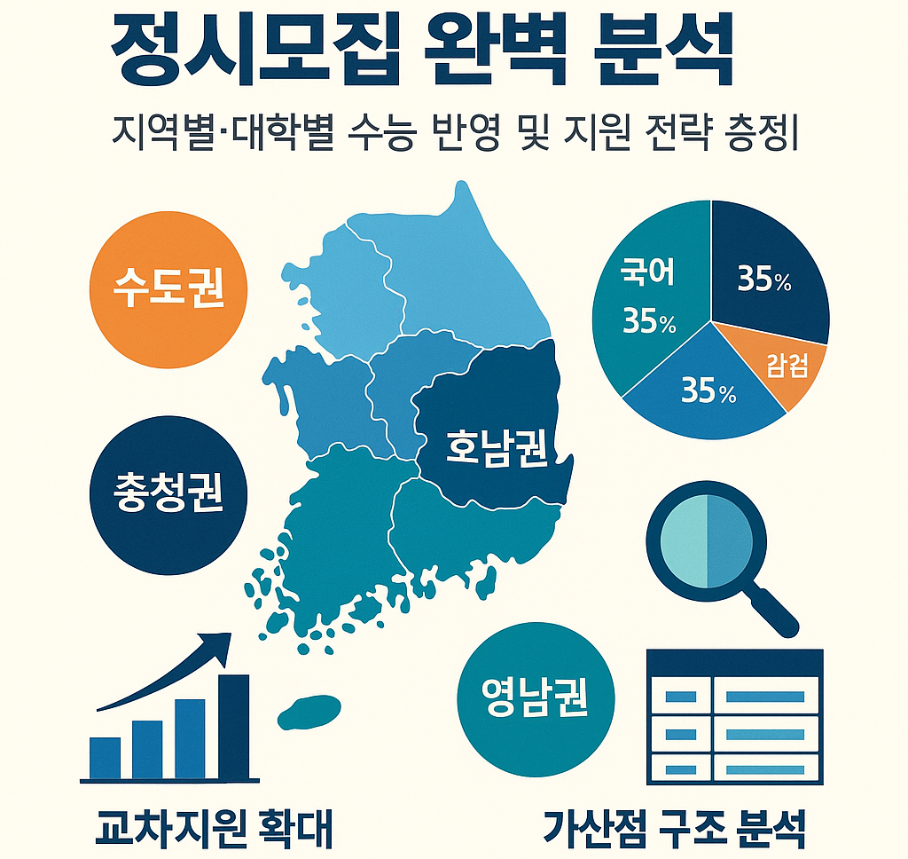 2026학년도 정시는 단순히 ‘수능 점수 싸움’을 넘어, “가산점·탐구조합·지역전형·교차지원”을 복합적으로 고려해야 하는 데이터 기반 전략형 입시입니다.