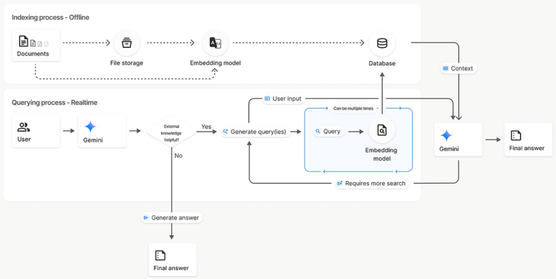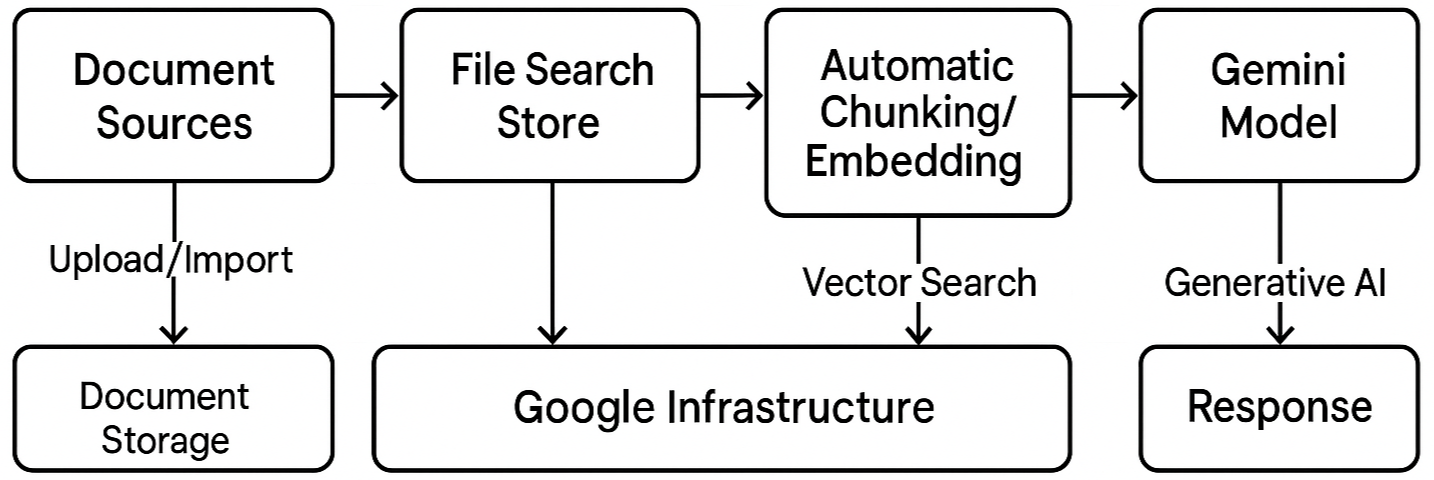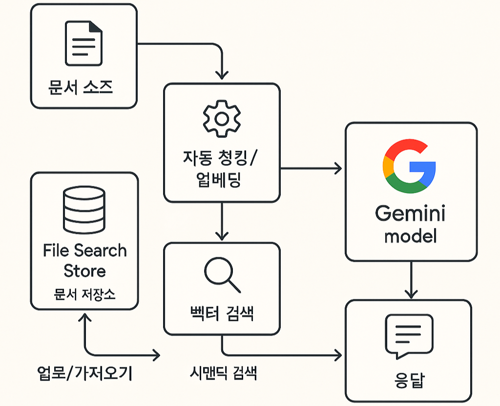 Gemini File Search는 이 파이프라인을 한 번에 통으로 관리합니다. (Google AI for Developers)