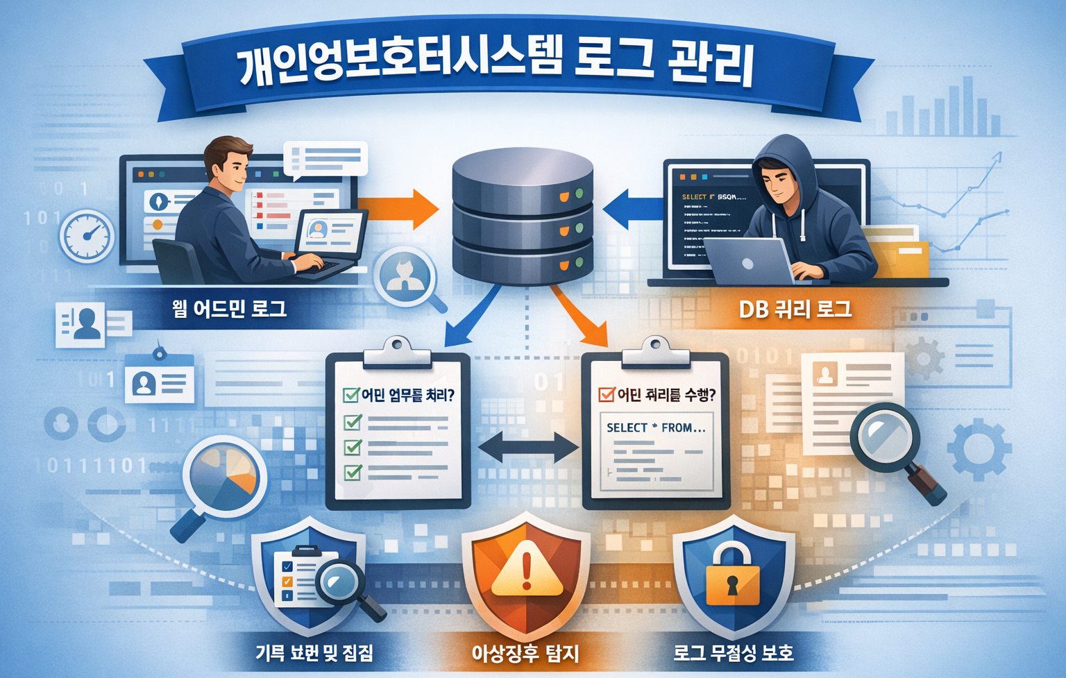 결론부터 말씀드리면, 법이 원하는 건 “SQL 원문을 다 남겨라”가 아니라 “누가(계정), 언제(시간), 어디서(IP/단말), 무엇을(조회/수정/삭제/다운로드), 누구의 개인정보를(대상 식별), 어떤 결과로(성공/실패) 처리했는지”를 사후에 입증 가능하게 하라는 것입니다.