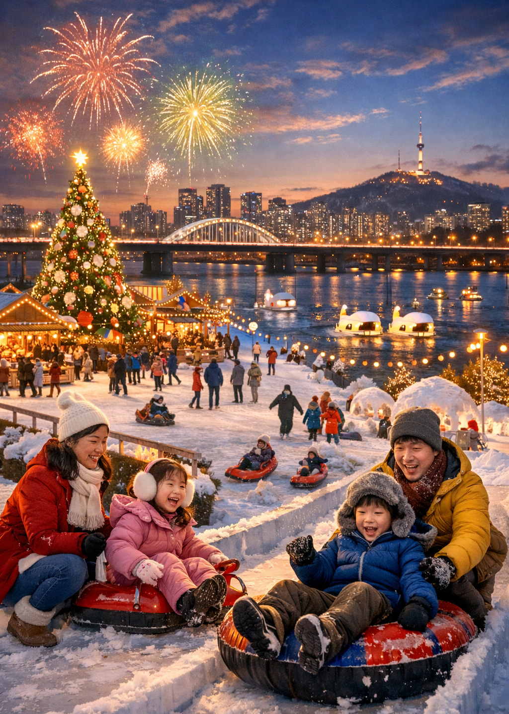 - 한강 크리스마스 마켓, 서울함공원 산타 테마, 선상 불꽃쇼 등 “연말 종합 패키지”로 소개됩니다.
