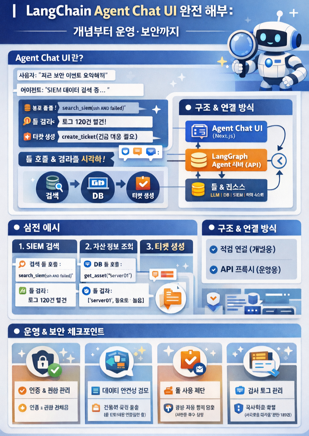 - “SIEM 조회 + 티켓 생성” 같은 현실적인 예시를 기준으로