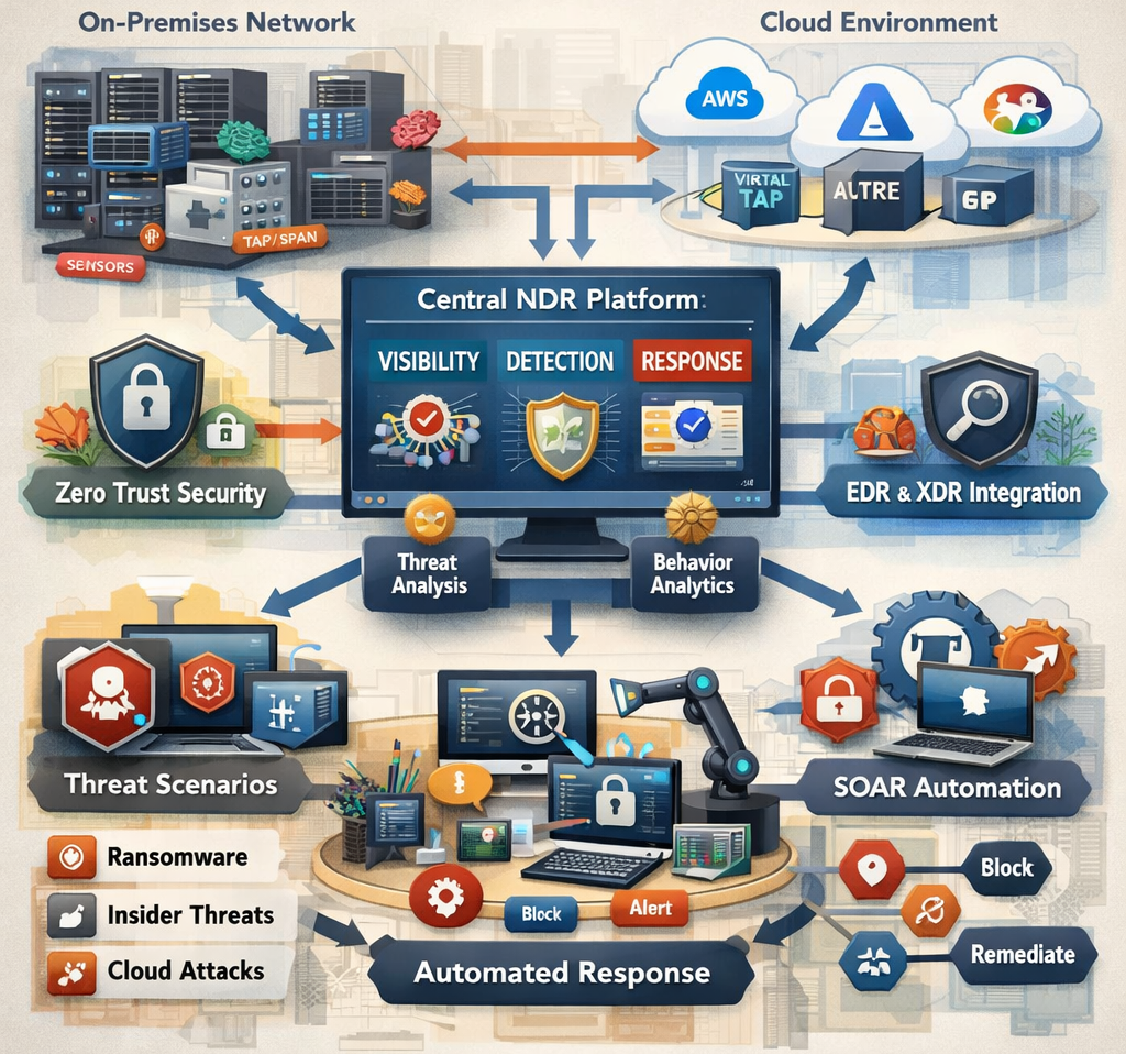NDR은 “네트워크 관찰자”이고, 실제 강제력(차단/격리)은 보통 방화벽·NAC·EDR·클라우드 SG/NSG·IAM이 쥡니다.
