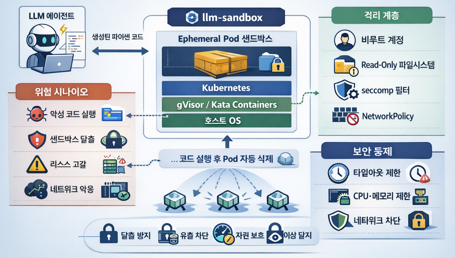 - 실행 프레임워크는 llm-sandbox로 시작(템플릿 강제 가능)