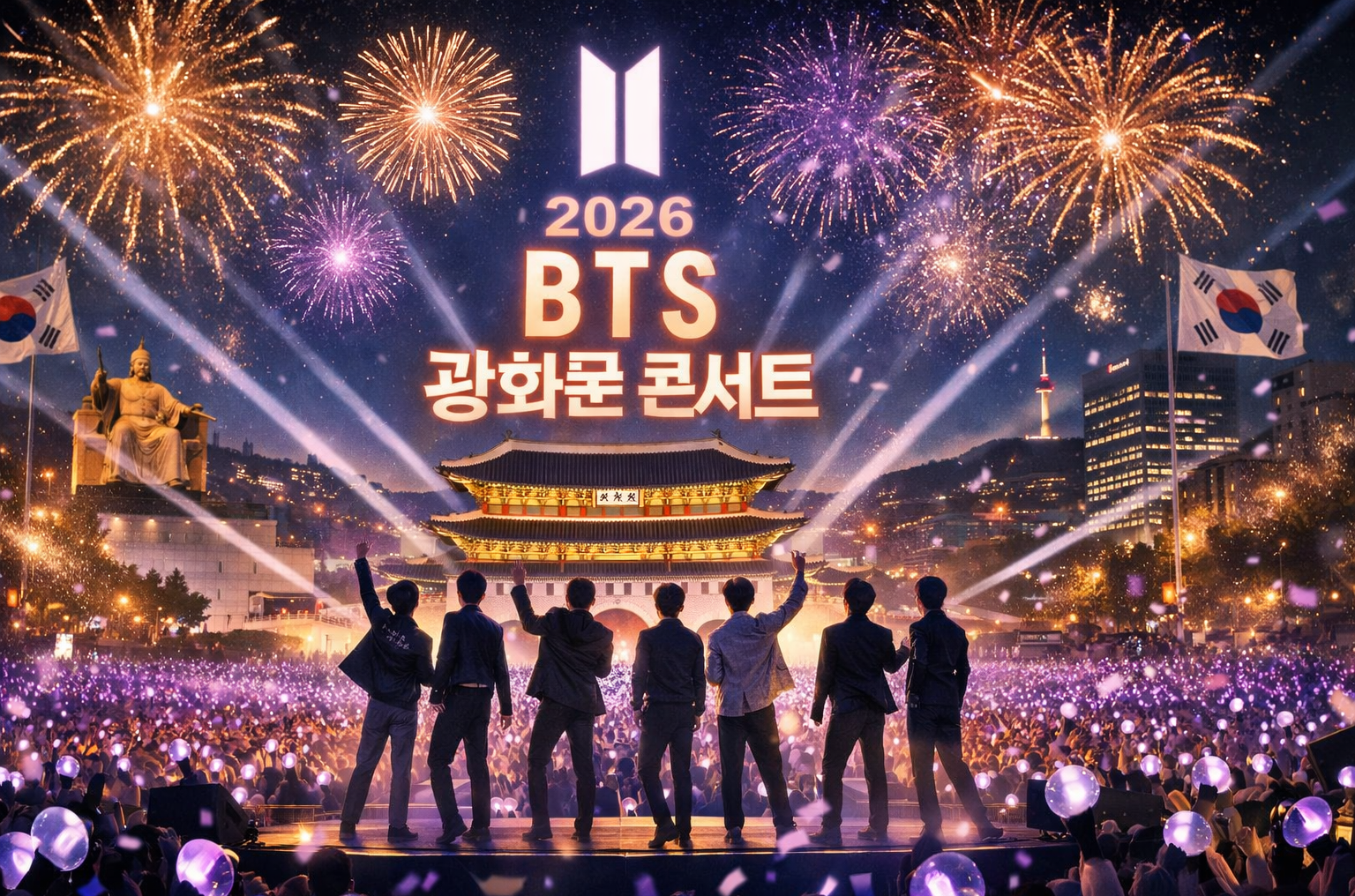 2026년 3월 21일, 서울 광화문광장에서 방탄소년단(BTS)의 완전체 컴백 공연이 열립니다. 이번 공연은 군 복무 이후 처음으로 진행되는 완전체 무대이자 정규 5집 ‘ARIRANG’ 컴백을 알리는 글로벌 이벤트라는 점에서 큰 주목을 받고 있습니다.