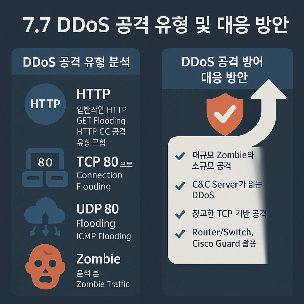 7.7 DDoS 대란은 단순한 대규모 트래픽 유입을 넘어서, 비정형적이며 정교한 공격 방식의 전환점이었습니다. 당시 등장한 HTTP CC Attack, Zombie IP의 무C&C 운영 등은 오늘날 AI 기반 보안 기술과 연계한 공격 형태의 전조로 평가됩니다.