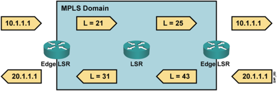 IOS 방식에서는 기본적으로 16부터 100,000 사이의 값을 사용하고 LFIB(Lable Forwarding Information Base) 테이블을 참조한다.