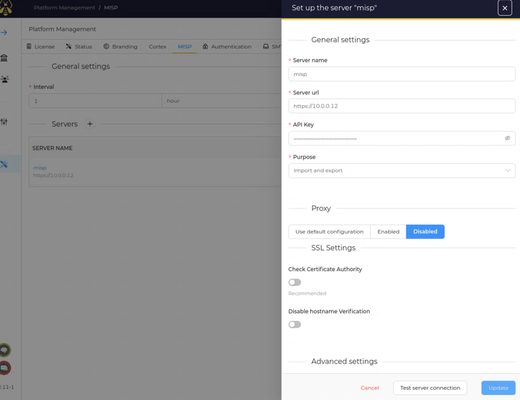 MISP는 사이버 위협 인텔리전스 플랫폼으로, Cortex와의 연동을 위해 설정이 필요합니다.