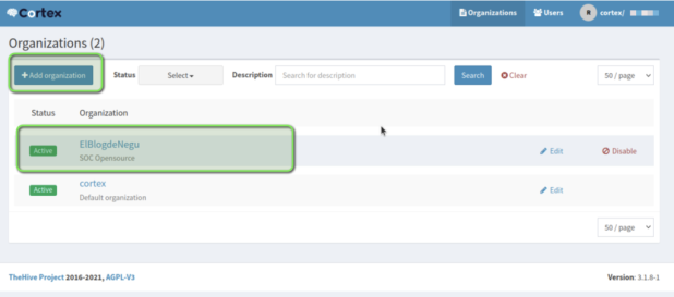 Cortex의 API 키를 생성하여 TheHive의 설정 파일에 추가해야 합니다. 다음과 같은 명령을 사용하여 Cortex의 API 키를 생성합니다.