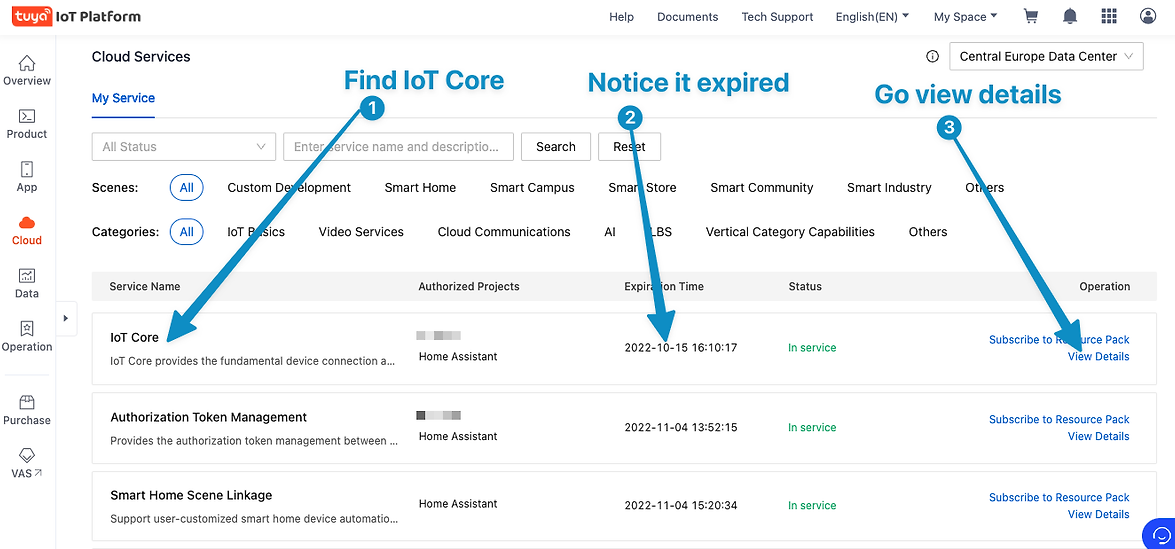 Tuya IoT 플랫폼에서 IoT Core의 유효기간을 연장하는 절차는 다음과 같습니다. 이 절차를 따라 유효기간을 연장하면 서비스가 중지되는 것을 방지할 수 있습니다.