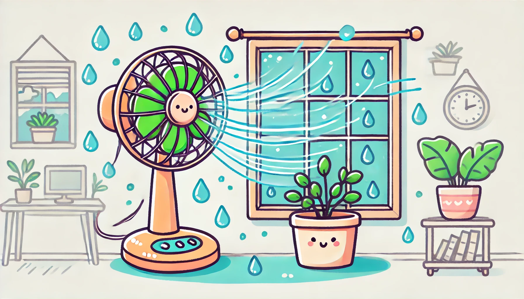 실내 공기가 정체되면 증산작용이 둔화될 수 있으므로 선풍기나 공기 순환기를 사용해 공기 흐름을 촉진할 수 있습니다. 하지만 너무 강한 바람은 식물에 스트레스를 줄 수 있으므로 부드러운 공기 흐름이 유지되도록 해야 합니다.